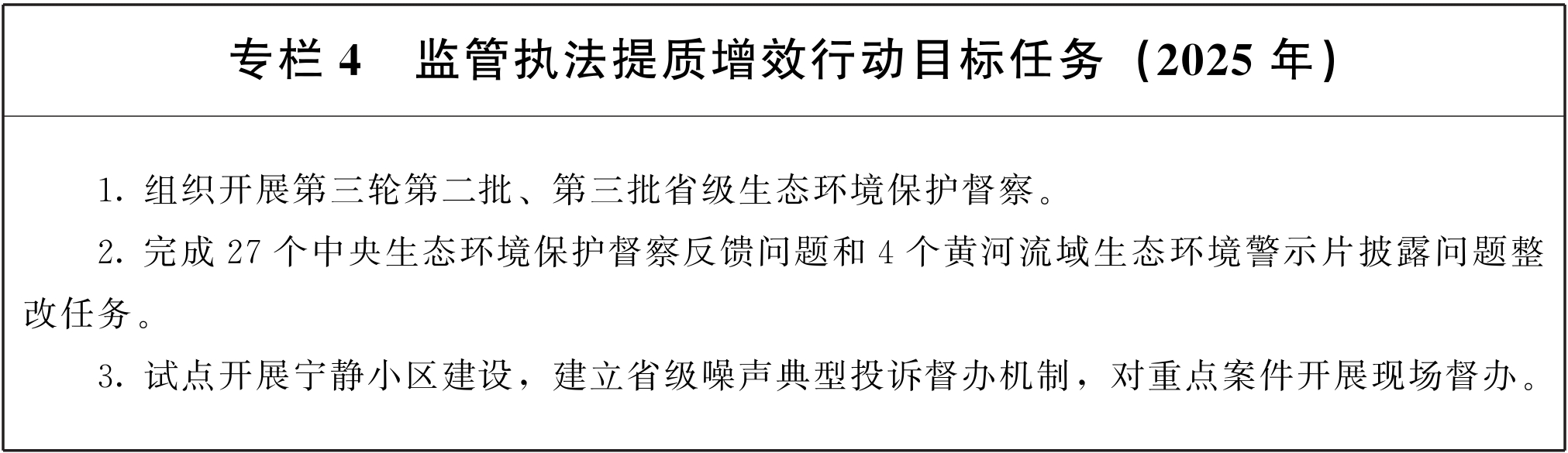 (二十)强化生态环境监管执法。加强生态保护和修复监管制度建设,建立自然保护地问题线索处理处置机制,健全生态保护和修复监管体系。推进生态环境行政执法、刑事司法、检察公益诉讼有效衔接,常态化开展联动执法。强化生态环境保护综合执法与自然资源、水利、农业农村、林草等部门协同执法。加强自然保护地生态环境保护综合行政执法。开展生态环境损害赔偿积案清理。会同青海省对祁连山自然保护区开展联合执法,合力打击跨区域生态环境违法行为。深入推进省级生态环境保护督察。(责任单位:省生态环境厅、省自然资源厅、省水利厅、省农业农村厅、省林草局、省法院、省检察院、省公安厅、省司法厅)